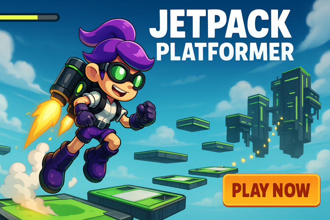 A fast-paced platformer where players control a character equipped with a jetpack. The objective is to navigate through a single, challenging level filled with obstacles, using the jetpack to reach high platforms, avoid traps, and get to the finish line as quickly as possible. With a focus on precision and timing, players can compete to beat their own record or challenge friends for the best time. The game offers a simple yet exciting experience perfect for short sessions of fun.